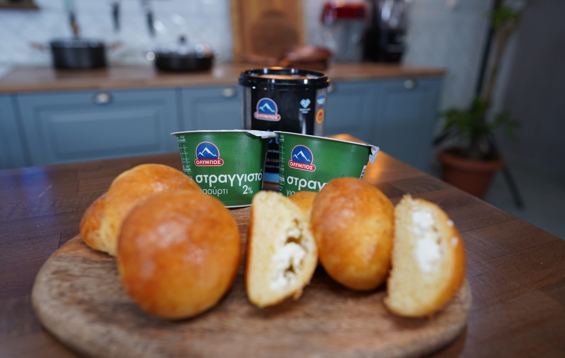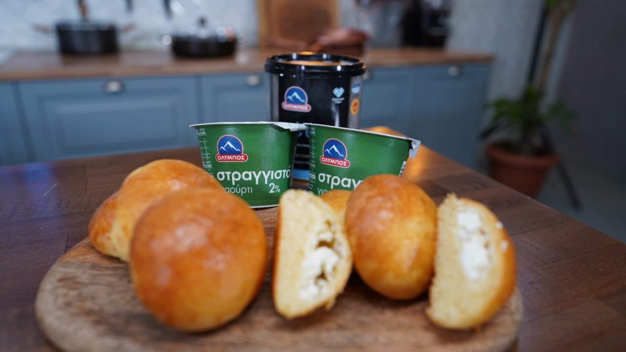 We knead the dough a little and we divide it into 30 gr. pieces, we open it, we fill it with grated feta cheese Olympos and we form our mini cheese bread in the shape of a ball.