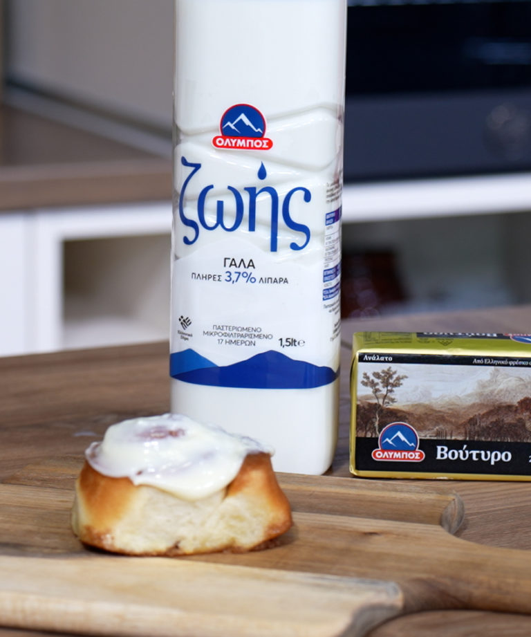 Γαρνίρουμε τα ρολά κανέλας με την κρέμα τυριού και σερβίρουμε.